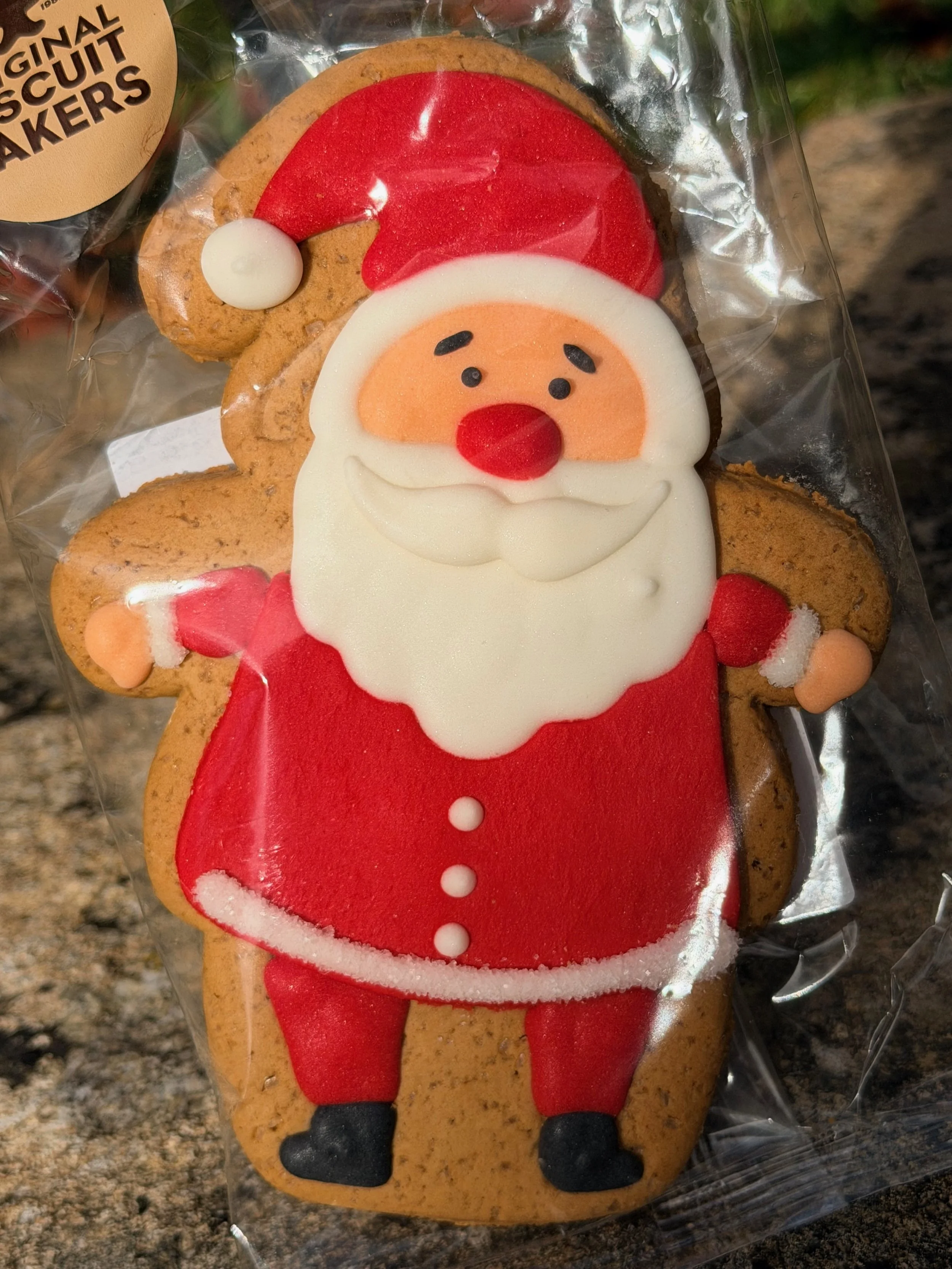 Santa biscuits are perfect to hide in a Christmas stocking.
