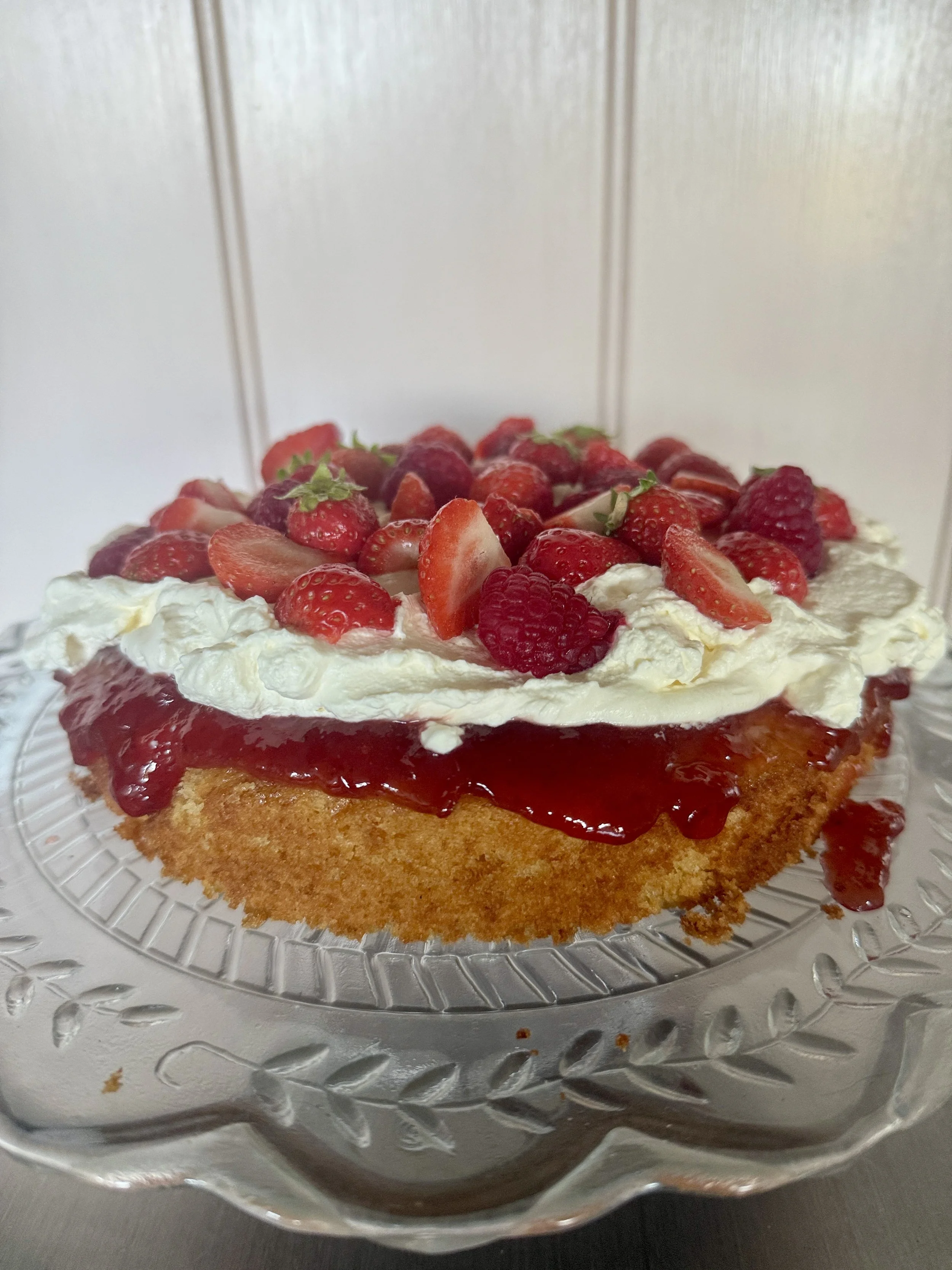 Using an electric whisk, or stand mixer with the beater attachment, whisk the butter and sugar till soft and fluffy. Add the eggs one at a time and beat in between. Add the yoghurt and whisk again briefly, fold in the SR flour - you can sift it in if you like but I never bother! Scrape the mixture into an 8” loose bottomed sandwich tin and bake on a baking tray in a medium oven 160 ish! till golden and risen and a skewer comes out clean. Allow to cool in the tin before decorating as you wish.